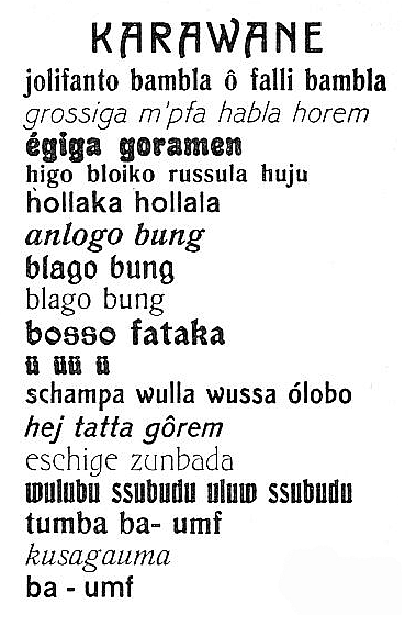 For example, the poem Karawane can be both looked at and read aloud... and its visual form affects its verbal performance...
